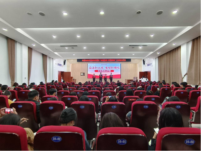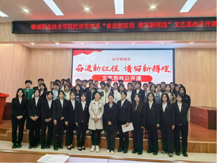 10月29日,经济管理系举办“奋进新征程 谱写新辉煌”文艺思政公开课。经济管理系辅导员薛静、肖玉欣及100余名学生代表参加活动。