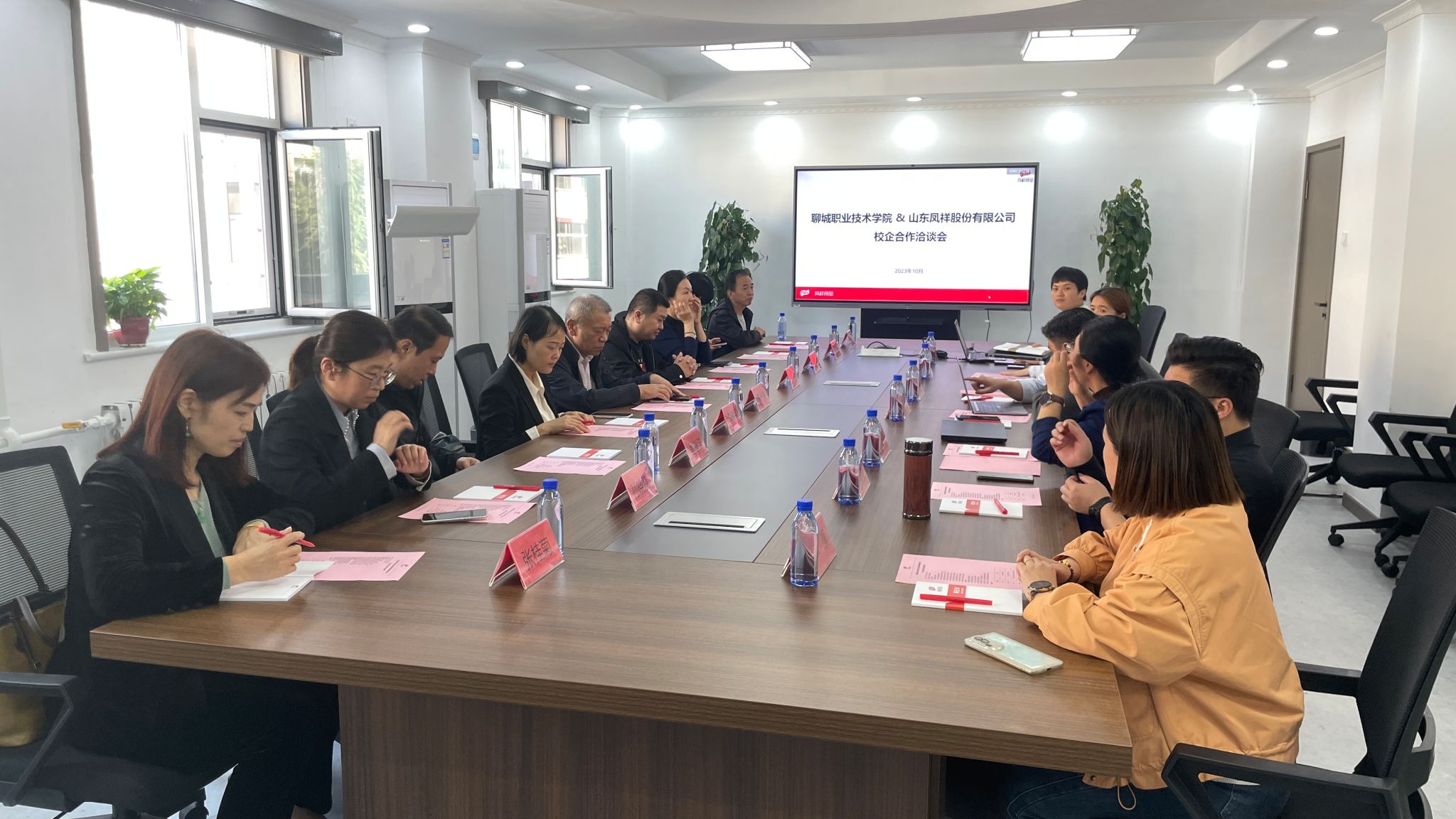 山东凤祥股份有限公司养殖事业总经理王希勇热情接待了考察团一行。座谈会上,王希勇介绍了公司的主营业务、经营模式、用人需求及产业转型升级发展等方面的内容与做法。王闯代表学校就专业设置、实习就业、社会服务、横向课题研究及聊城市智能(仿真)综合性公共实训基地建设等有关办学情况作了详细的介绍。