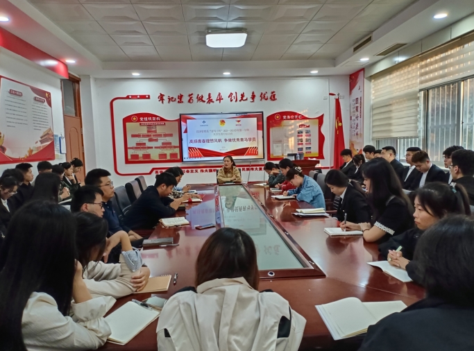 11月2日,经济管理系开展2023-2024学年第一学期“青马工程”第三次培训。经济管理系学工组长郭怡、全体辅导员及50余名学生骨干代表参加培训。培训由郭怡主讲。