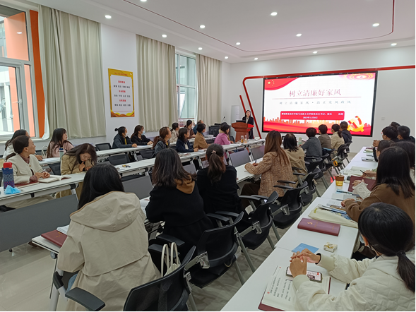 为进一步学习贯彻习近平新时代中国特色社会主义思想,进一步深化思想认识,推动廉政文化建设,营造廉洁文化氛围。11月9日,马克思主义学院党总支书记孙剑以“树立清廉好家风”为主题,为马院全体党员教师上了一堂内容丰富、主旨鲜明的专题党课。