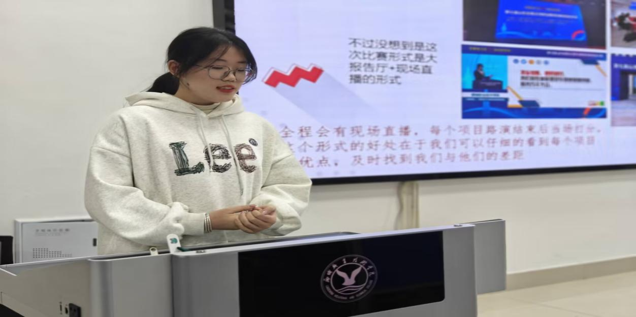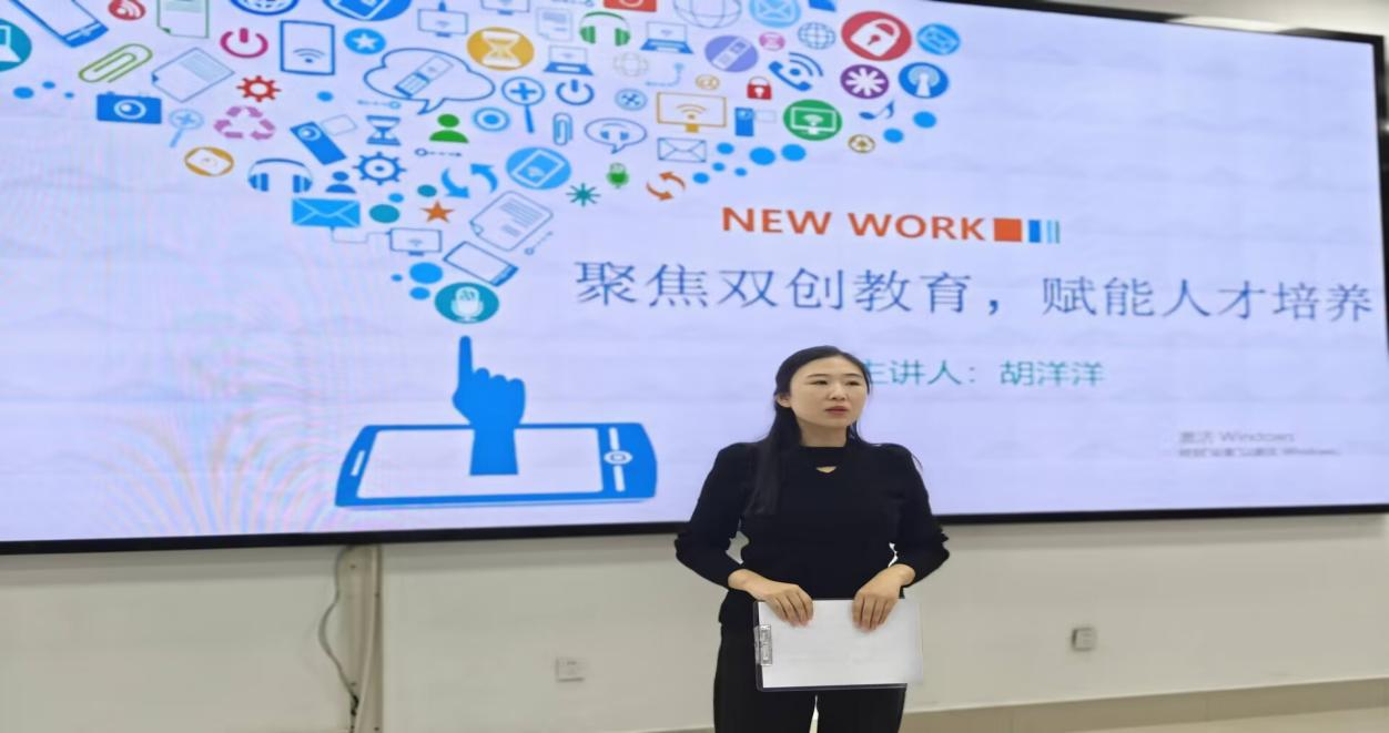 机电工程系负责创新创业工作的辅导员老师胡洋洋从创新创业的时代意义、双创大赛的解读、双创的成果以及备赛干货等方面进行讲述,指导同学们更好地在各类竞赛中做出成绩。