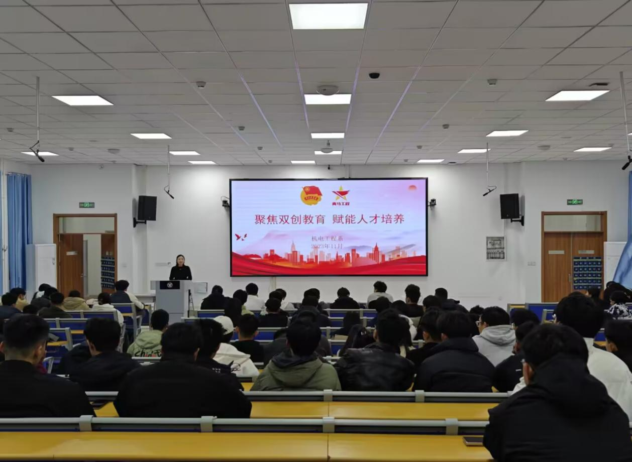 为培养大学生创新精神和创业能力,引导大学生开展丰富多彩的创新实践活动,敢于直面问题、解决问题的本领。11月20日,机电工程系开展“聚焦双创教育 赋能人才培养”大学生创新创业知识培训。机电工程系学生干部、各班班长、双创委员等200余名同学参加。