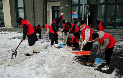 志愿者切实树立主人翁意识,弘扬志愿服务精神,主动发挥青年生力军作用,在保证安全的前提下,积极引领同学们有计划、有组织的参与到清冰除雪行动中来,利用课余时间分批多次及时开展清冰除雪,减少低温暴雪给师生出行带来的不便,消除安全隐患。