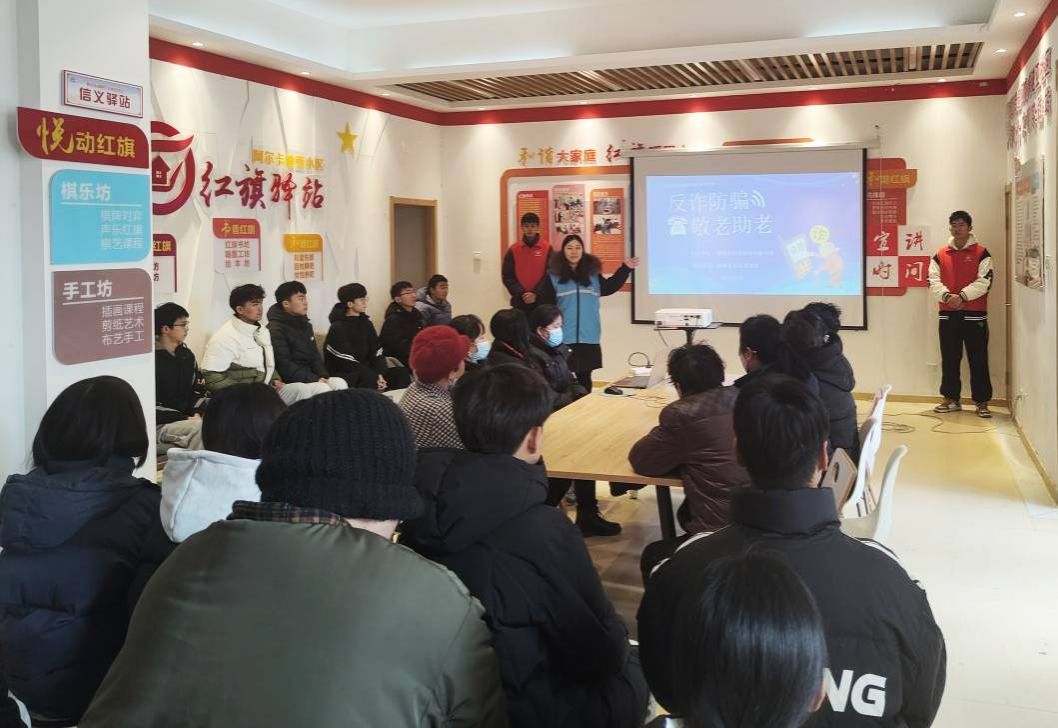 1月8日,建筑工程系组织志愿20余名志愿者走进阿尔卡迪亚社区,开展“反诈防骗,敬老助老”宣讲活动。
