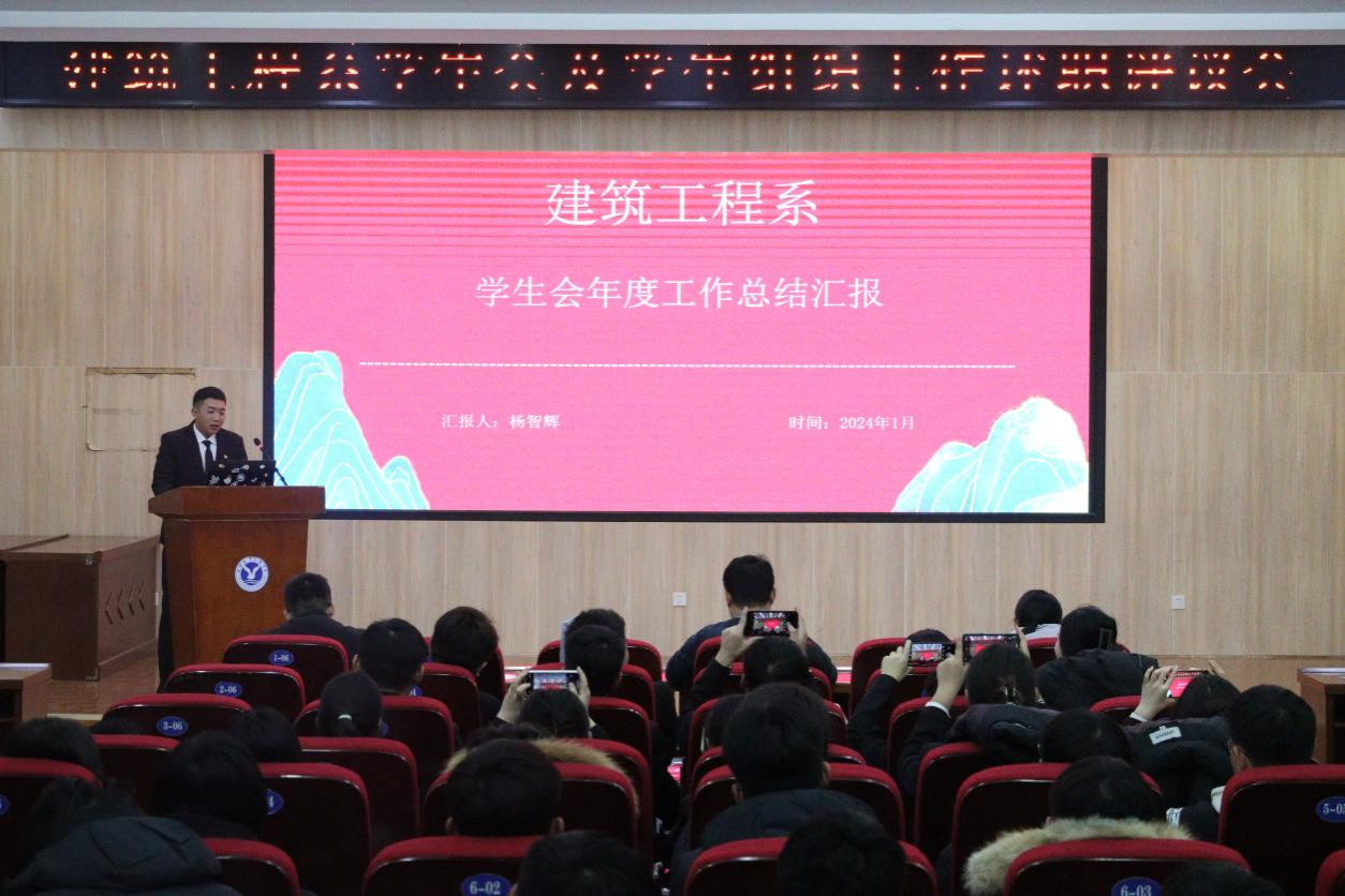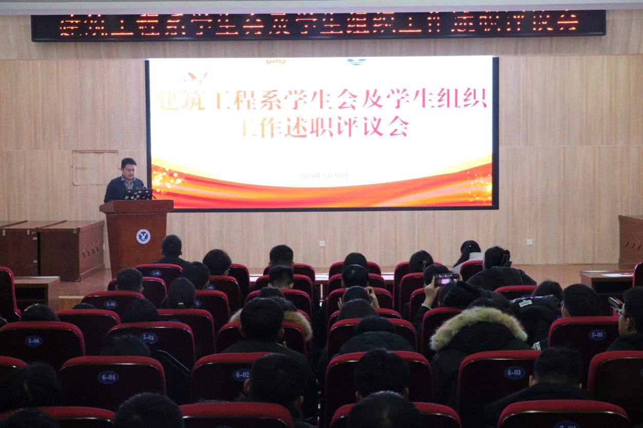 为深入贯彻落实学生会组织深化改革的要求,总结2023学年学生会工作成效经验,全面提升服务师生的水平,1月11日,建筑工程系召开学生会及学生组织述职评议大会。团总支副书记冯秀颖、全体辅导员、80余名学生代表参加活动。