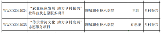 近日,聊城市社科联公布2024年聊城市新时代文明实践社科普及“五为”志愿服务重点项目立项名单,农牧科技系“‘农业绿色发展助力乡村振兴’社科普及”及“传承黄河文化助力乡村发展”两项志愿服务项目成功入选乡村振兴类志愿服务重点项目。