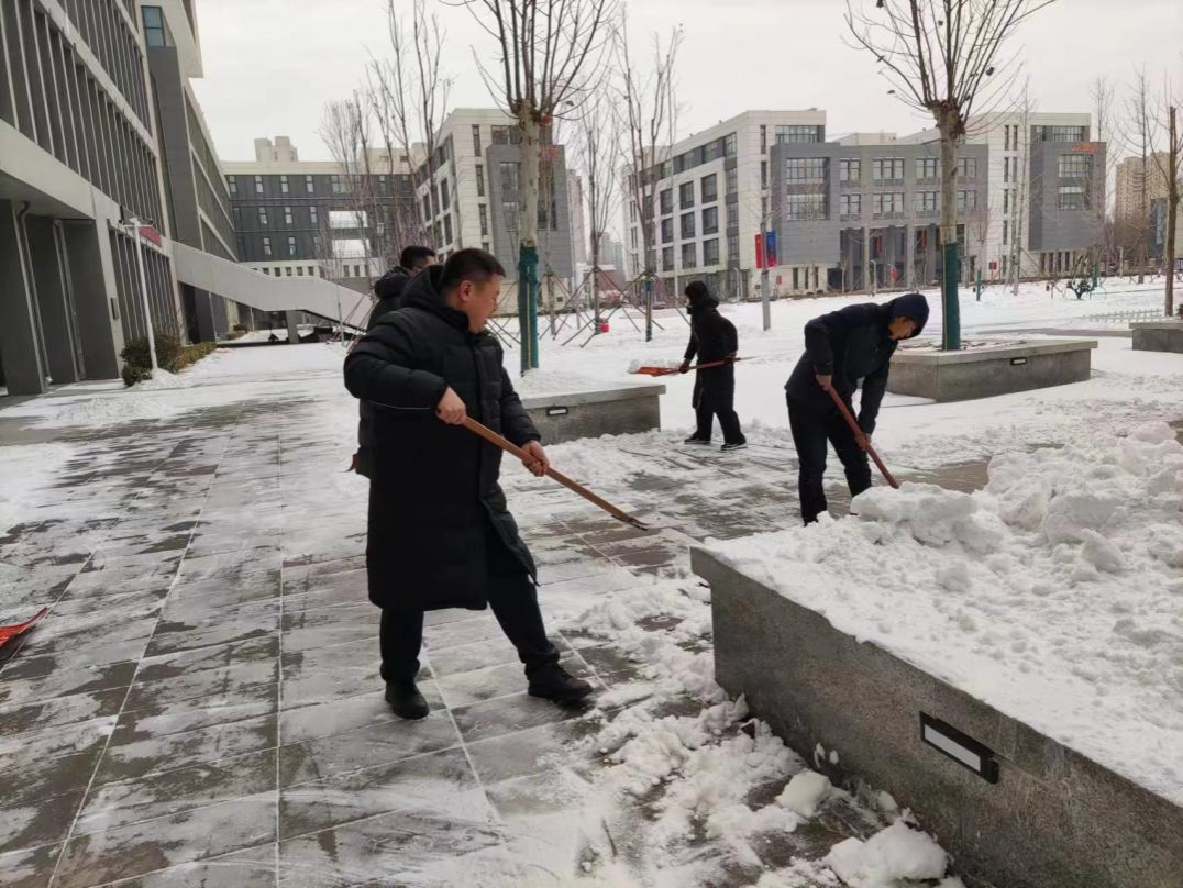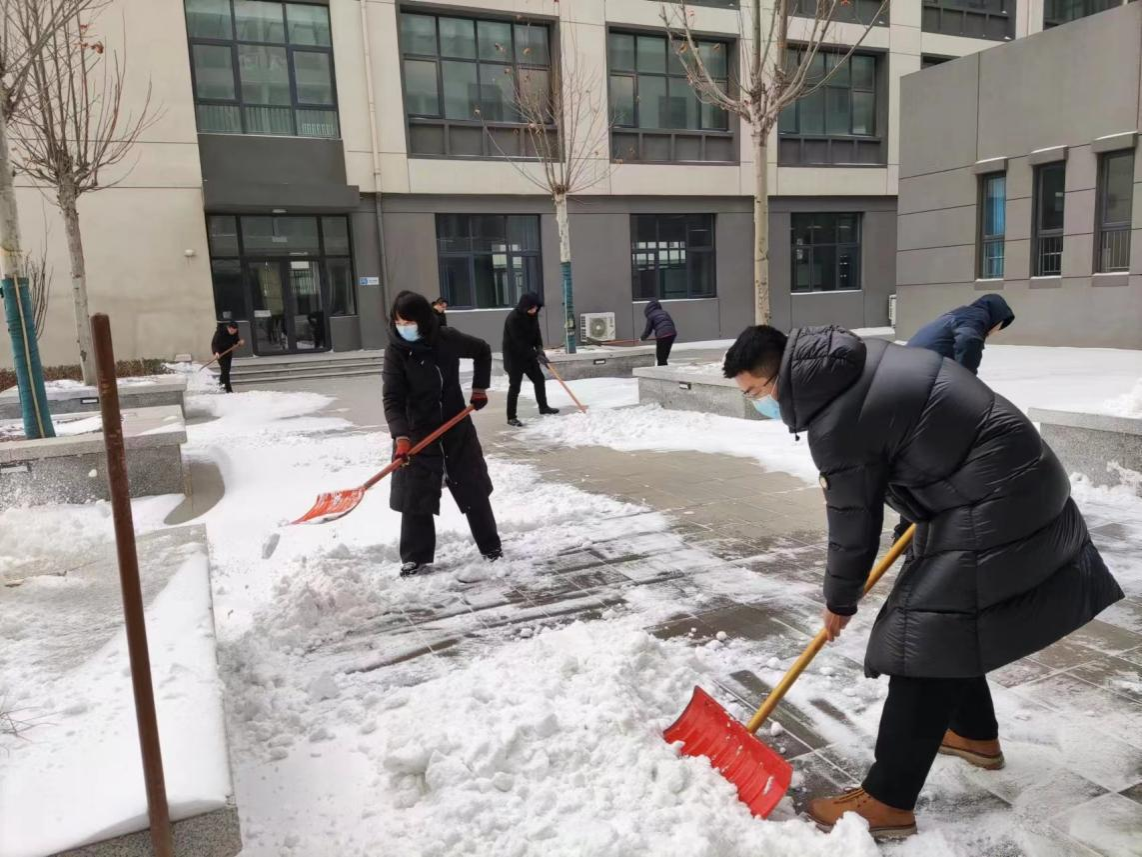 教师们迅速集结,明确分工任务,拿着铁锹、扫把,扫积雪、铲冰层,虽然天气寒冷,手冻僵了,脸冻红了,但丝毫没有阻挡大家铲雪除冰的热情,所有人员齐心协力,争分夺秒把积雪打扫的干干净净,为师生们清理出一条条便利出行的通道,保障了出行安全。