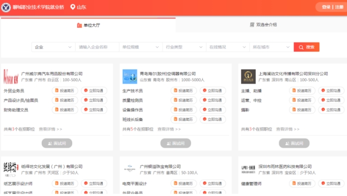 线上线下双结合,搭建平台促就业。充分用好国家24365大学生就业服务平台、山东高校毕业生就业信息网、聊城智慧就业平台、聊城职业技术学院2024届毕业生线上双选会等各级各类就业网络平台,保障招聘信息推送不断线,通过线上“云招聘”的方式多次举办招聘活动,搜集、筛选和学生专业对口的岗位和单位,及时推送给学生,为毕业生提供充足就业岗位。组织学生参加聊城市2024春风行动招聘会,招聘会提供岗位1万余个,服务学生就业“送岗位、送政策、送服务、送技能”,线上线下齐发力,加强与用人单位沟通合作,加大优质岗位供给,为毕业生择业就业搭建平台,促进学生高质量就业。