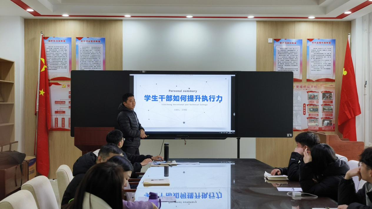 赵荣荣以“怎样做好一名优秀的学生干部”为主题,号召全体学生干部找准定位、注重修养、提高自身综合素质,力争做全面发展的优秀学生干部。