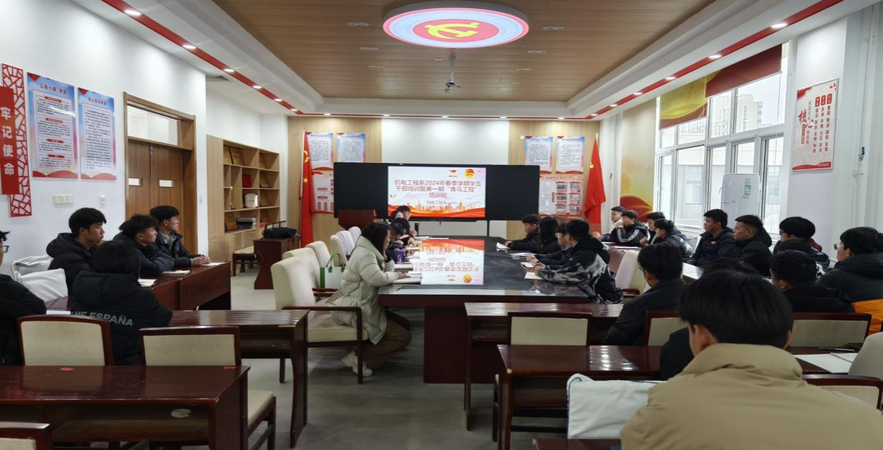 为强化学生干部思想引领,加强思想政治教育,2月23日,机电工程系开展2024年春季学期学生干部培训暨第一期“青马工程”培训会,团总支副书记刘丽敏、全体辅导员老师、各学生会组织学生干部、学生干事等40余人参加会议。
