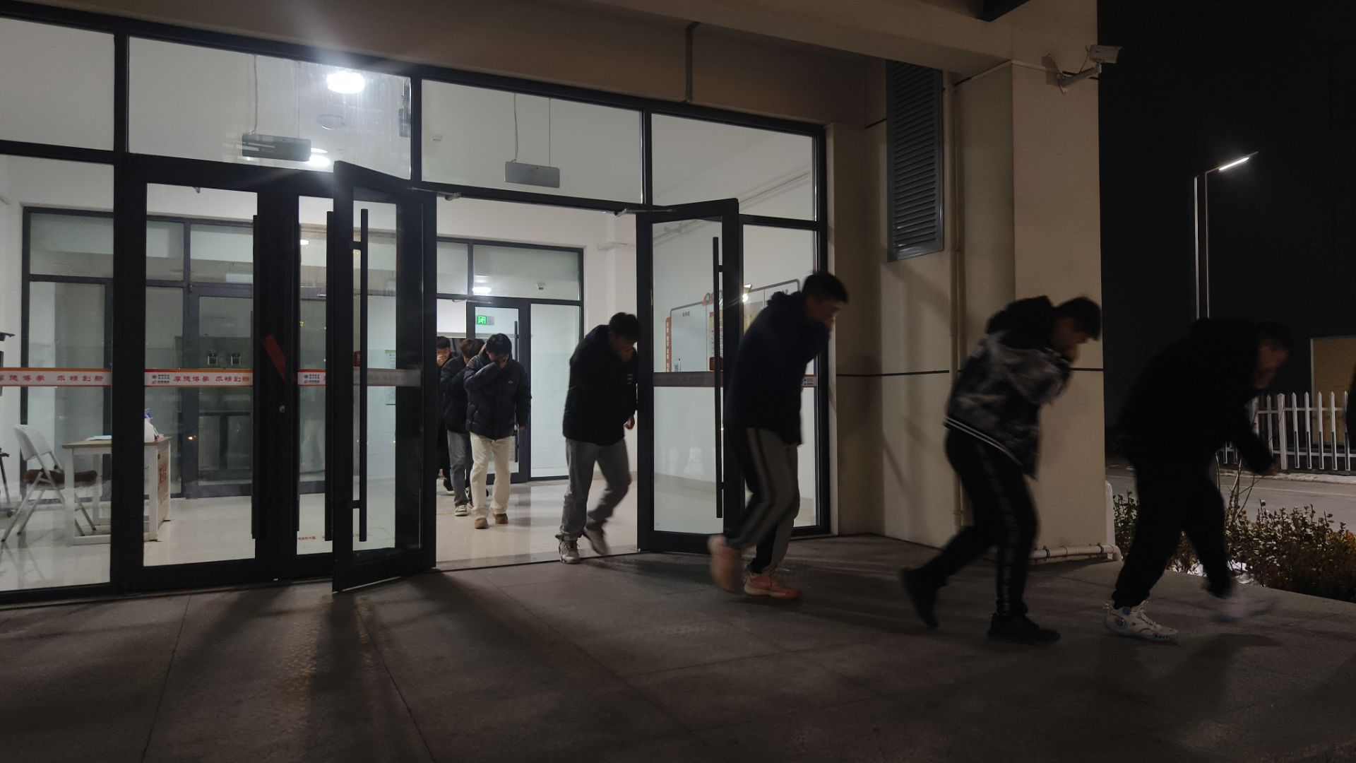 演练前,机电工程系制定了宿舍夜间应急疏散演练预案,并召开专题会议,精心部署演练的各项组织工作,确保演练安全、有序进行。晚上19:00,警铃一响,同学们按照演练预案规划路线进行有序疏散,整个过程井然有序,同学们撤离到楼下后,在预案所安排的安全位置整理集合完毕。