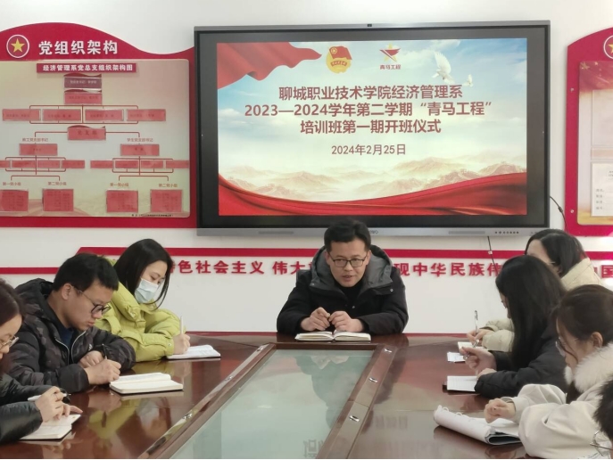 为深入学习贯彻习近平新时代中国特色社会主义思想,贯彻落实党的二十大精神,为党培养信仰坚定、能力突出、素质优良、作风过硬的青年政治骨干,2月25日,经济管理系举行2023-2024学年第二学期“青马工程”第一期开班仪式。经济管理系党总支副书记崔兴军、团总支副书记苏飞、全体辅导员及青马学员们参加活动。