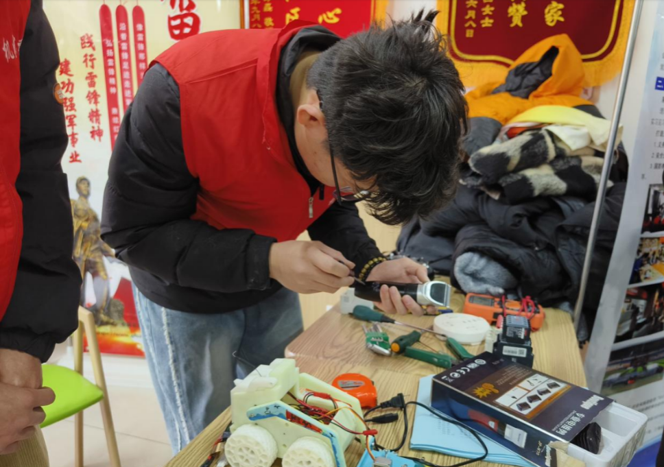 活动中,志愿者开展“国防教育进社区”“义务维修进社区”“安全知识进社区”等志愿服务,退役复学学生通过现场宣讲、发放国防知识、入伍政策宣传页等形式,进一步增强社区居民的国防意识和国防观念;利用所学专业、结合社会案例现场讲解电动车锂电池特征与安全充电要求,增强居民消防安全意识,筑牢社区“防火墙”;为社区居民义务维修烧水壶等小家电,以实际行动书写新时代的雷锋故事,得到了居民的一致好评。