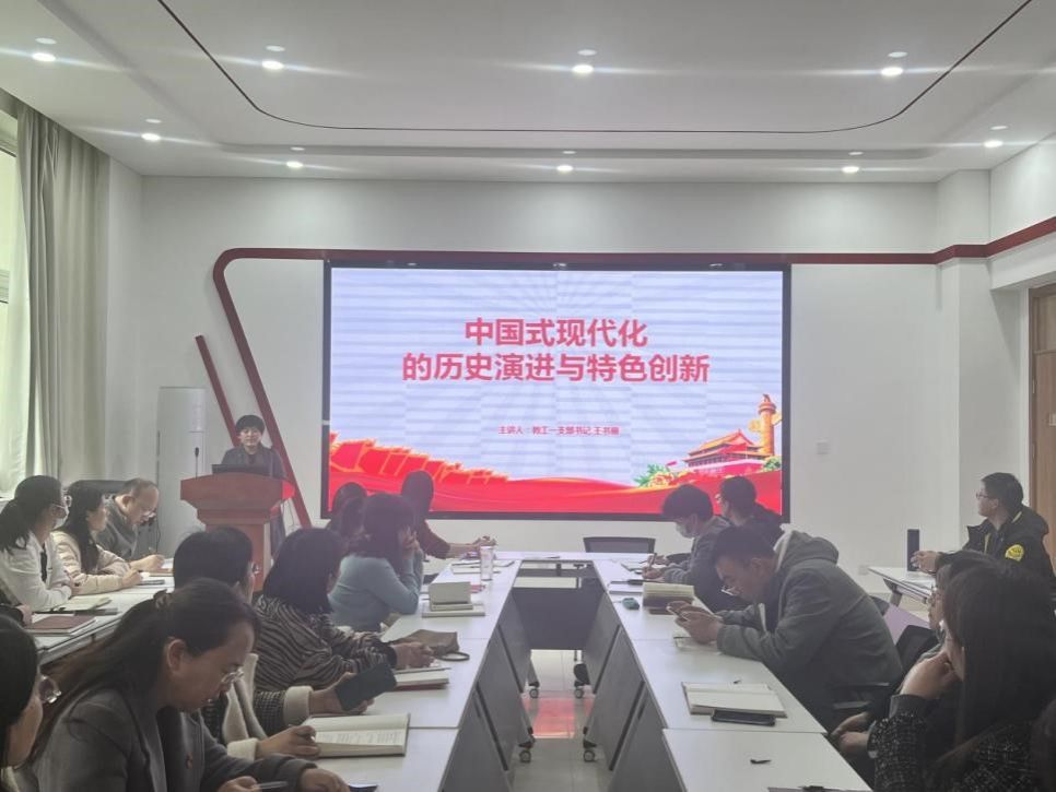 3月7日,聊城职业技术学院马克思主义学院教工第一党支部书记王书丽以《中国式现代化的历史演进与特色创新》为题,为马院全体党员教师讲授党课。
