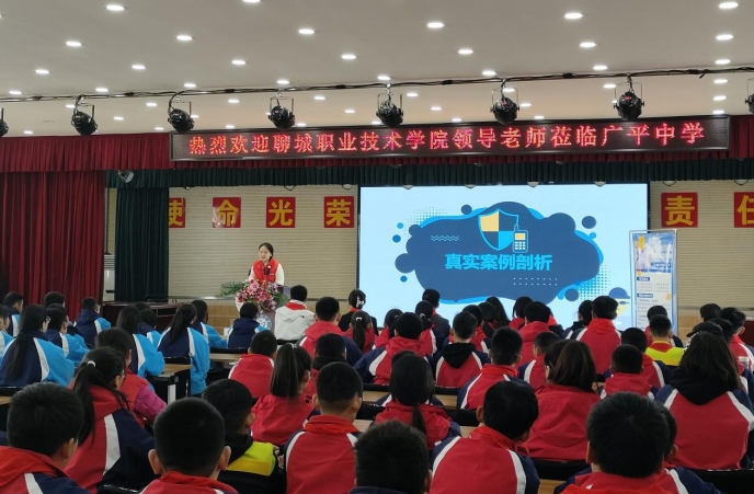 为了提高未成年人对电信网络诈骗的防范意识,增强未成年人的自我保护能力,3月14日,经济管理的志愿者们赴广平中学,开展“铸就防骗长城,守护青春未来”防范电信网络诈骗宣讲活动。校团委书记张博文、经济管理系团总支副书记苏飞、东昌府区广平镇团委书记李翔之、广平中学副校长宋晓阳、经济管理系教师代表以及广平中学200余学生参加本次宣讲活动。