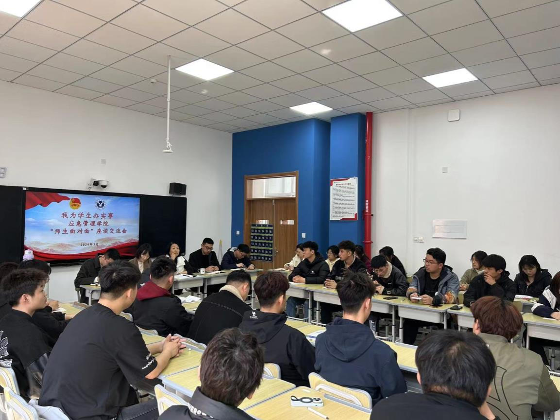 为进一步强化师生沟通,深入了解学生的实际需求,提高学生的幸福感和获得感,3月15日,应急管理学院开展“积蓄力量,跨步向前”师生面对面交流活动。应急管理学院院长郭玉娟、综合科科长张风明、团总支书记陈晨、全体辅导员及部分学生代表参加。在场学生围绕“学业学习”“日常生活”“发展规划”等方面畅所欲言,道出广大学子诉求,为学院教学工作和学团工作发展献计献策。与会领导和老师们认真倾听、详细记录学生发言,并就相关问题进行了及时回应与互动交流。