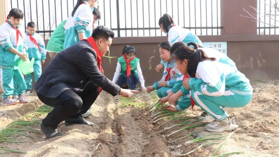 活动现场,志愿者采用现场提问互动的形式,围绕黄河中下游农耕文明中生产工具的演变、二十四节气、聊城特色非遗三个方面,生动细致地为少先队员进行了讲解。展板前,队员们驻足观看,认真聆听,用心记录下自己的所学所思。随后在校园劳动教育基地开展了“体验春耕劳作”实践活动,大家在播种、耕耘的过程中感受种子向上的生命力量,感悟中华优秀农耕文化的劳动之美。