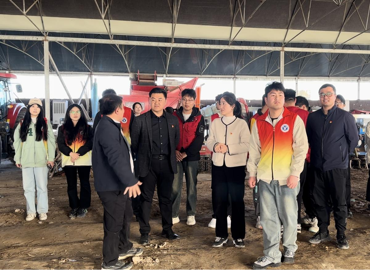 “新农人”王伟带领大家参观自创的农机设备、高标准农田,就农业知识进行培训交流,鼓励同学们脚踏实地,努力学习知识,更好的服务社会。