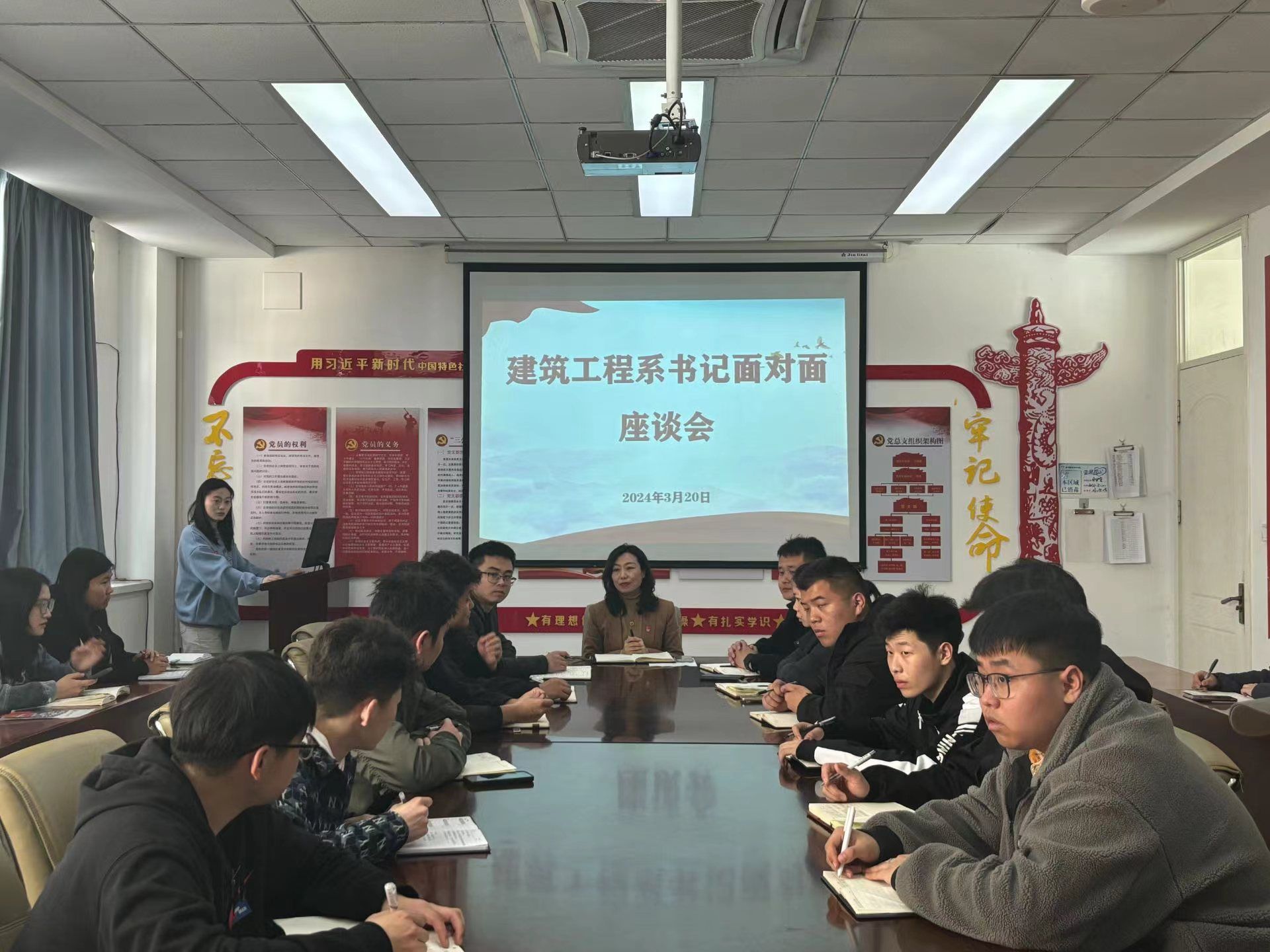 建筑工程系坚持坚持党建引领团建,将“我与书记面对面”交流作为一项常态化工作,全面走近学生、了解学生,助力学生健康发展、平安校园建设。