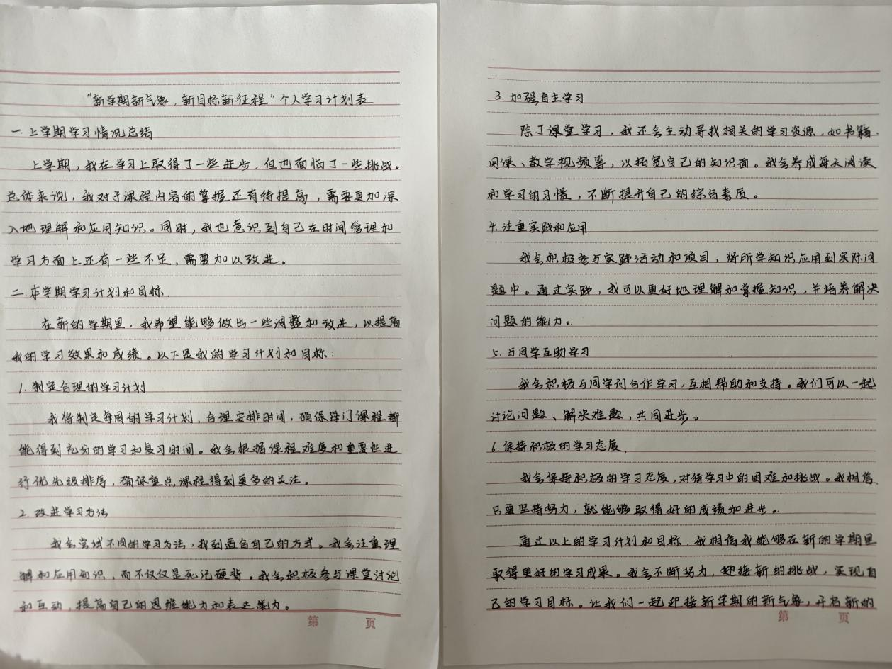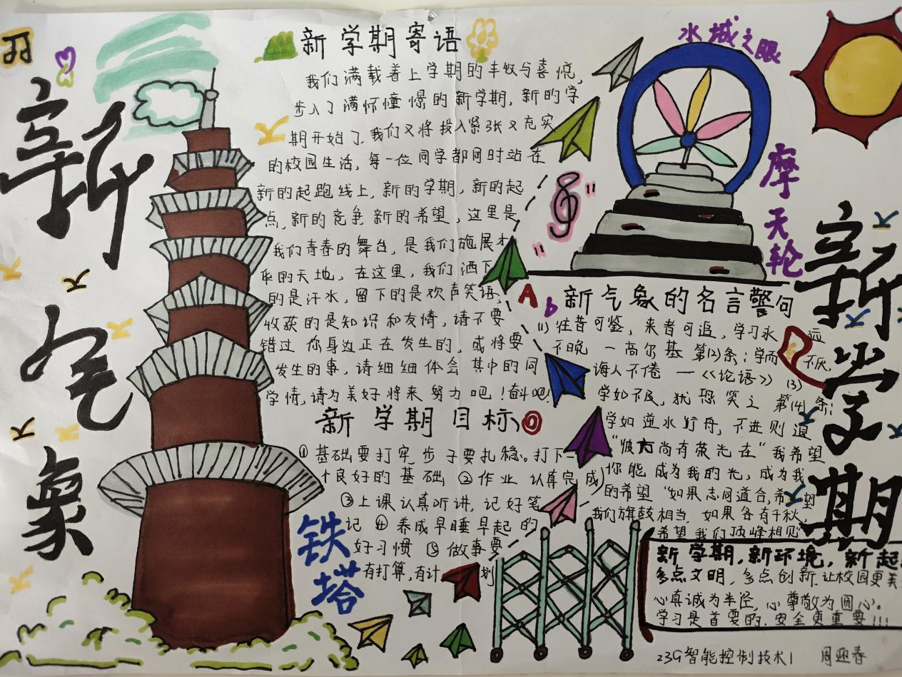 二是制定个人学习计划表或手抄报。以“新学期新气象,新目标新征程”为主题,组织同学们结合自身实际设计个人学习计划表或符合主题学风建设手抄报,评选优秀作品张贴于公告栏,激励更多同学努力奋进。
