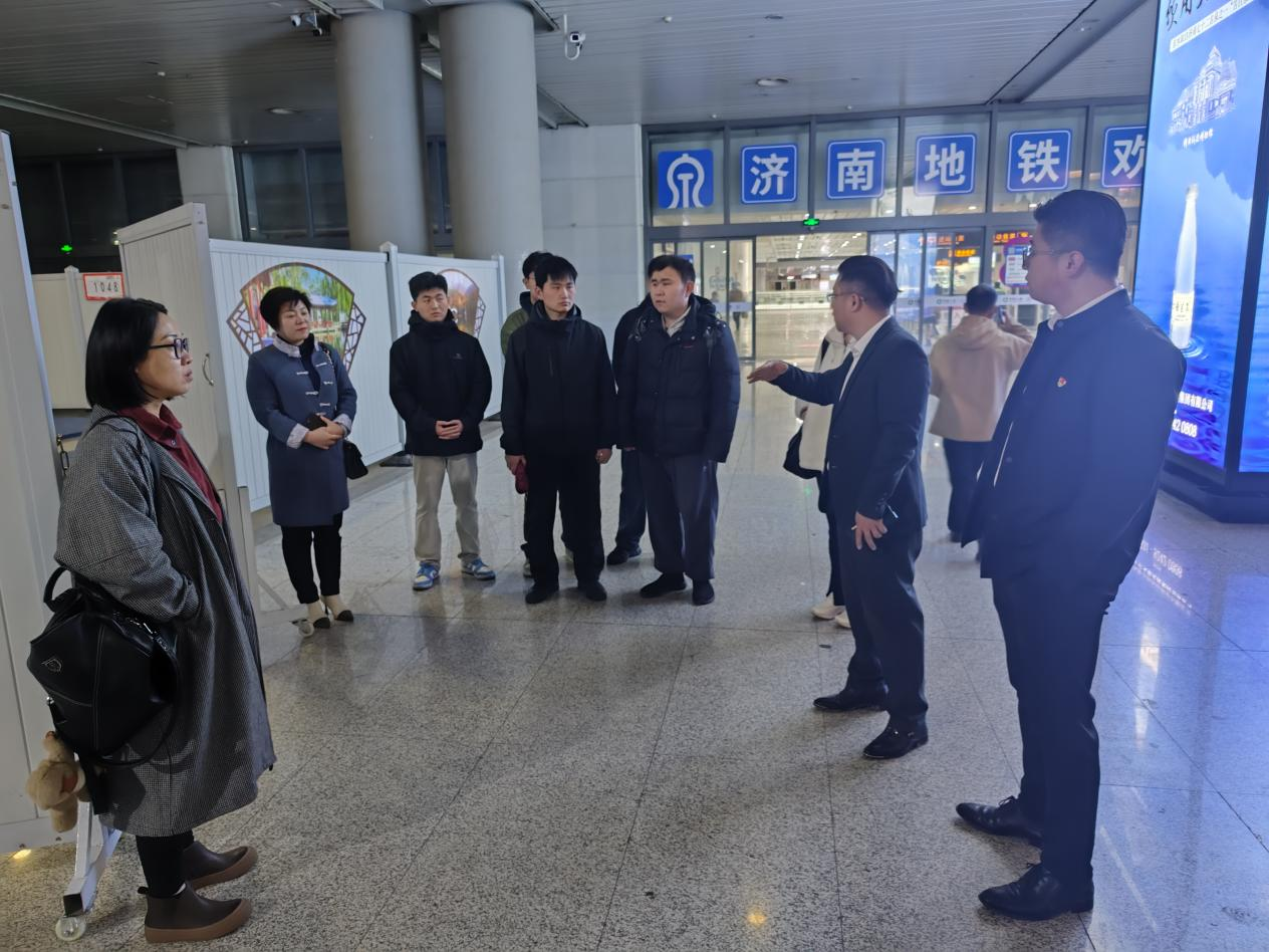3月25日,旅游管理系党总支副书记陶维伟带领12名2024届优秀毕业生代表,赴济南高铁服务岗位一线,与济南驰源人才科技有限公司总经理陈琳、中运铁路运营管理高铁项目的总负责人侯震宵、济南铁路局客运段乘务餐乘培训基地主任王清波进行对接交流。