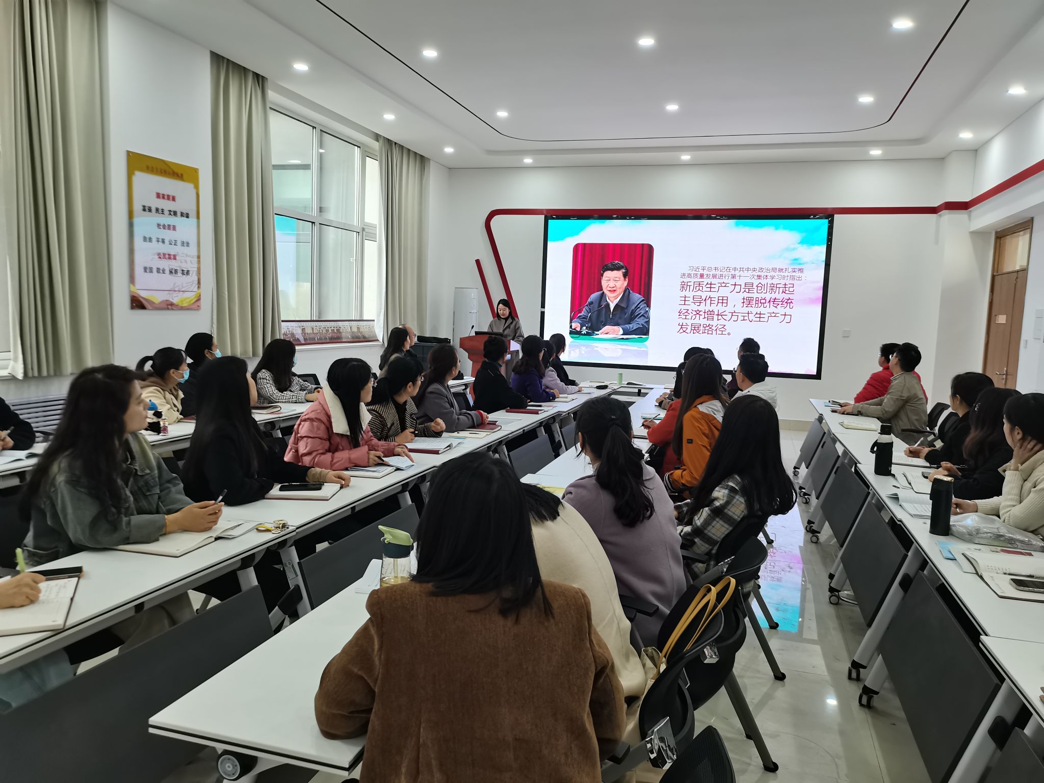 3月28日,马克思主义学院开展“红润聊职”行动,组织全体党员教师学习习近平总书记对扎实推进新质生产力发展作出的系列重要讲话。活动由党员教师贾真担任主讲。