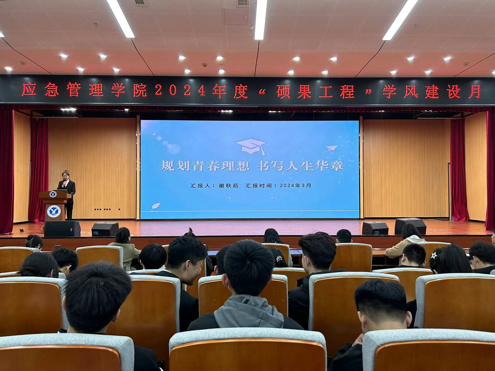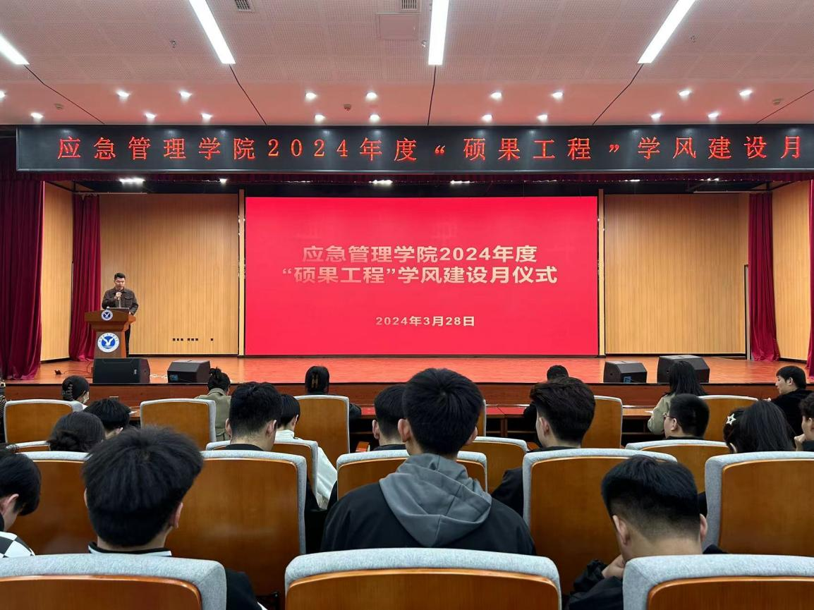 为加强学风建设,进一步巩固“三全育人”工作成效,促进学生全面发展,3月29日,应急管理学院举办“硕果工程”学风建设月活动。团总支书记陈晨、综合科科长张风明、全体班主任老师及200余名学生代表参加。