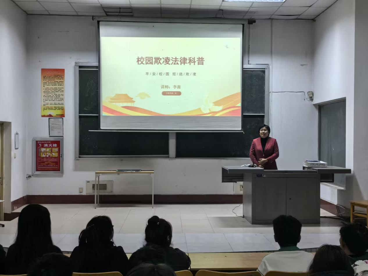 为进一步提高学生的法律意识,增强自我保护能力,预防校园欺凌的发生,4月2日,农牧科技系邀请山东德衡(聊城)律师事务所法制辅导员李茜为师生带来了一场“反校园欺凌”主题普法宣传讲座。