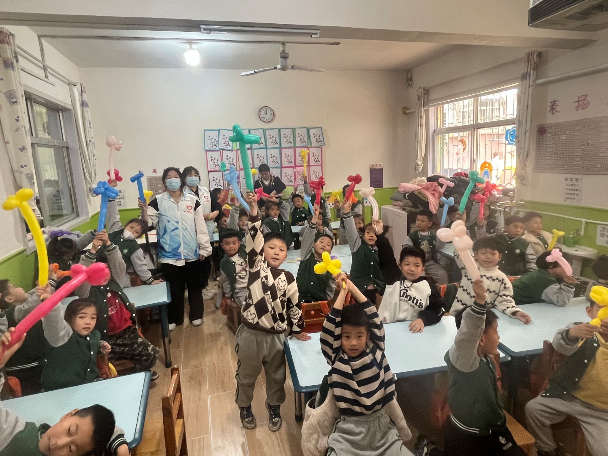 为了增加大家的热情,更好地传播非遗文化,志愿者在现场开展了有奖问答活动。回答问题的小朋友便可以获得气球奖励,小朋友们一个个积极举手作答,小朋友们开心展示自己的奖品。