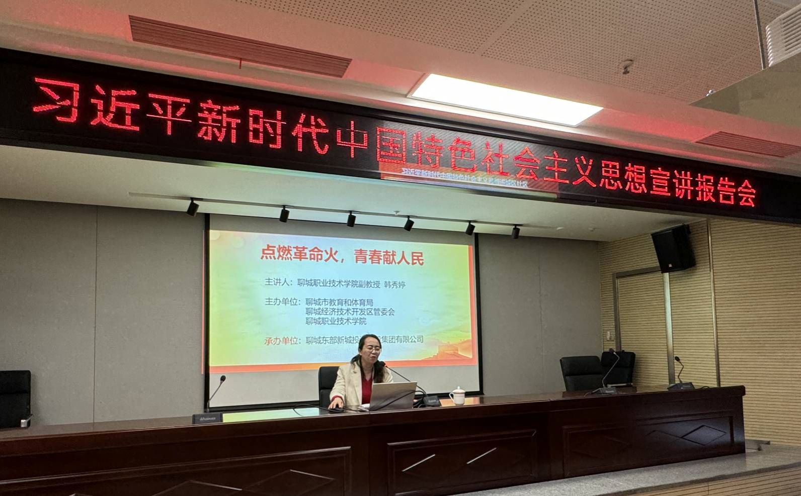 4月12日,为进一步学习贯彻习近平新时代中国特色社会主义思想,聊城市教育和体育局、聊城经济技术开发区管委会、聊城职业技术学院与聊城东部新城投资控股集团有限公司联合举办“习近平新时代中国特色社会主义思想进城乡社区”活动。聊城职业技术学院马克思主义学院党员教师韩秀婷、马艳斌、张婷等党员教师为聊城东部新城投资控股集团有限公司的党员作了题为《点燃革命火,青春献人民》的理论宣讲。