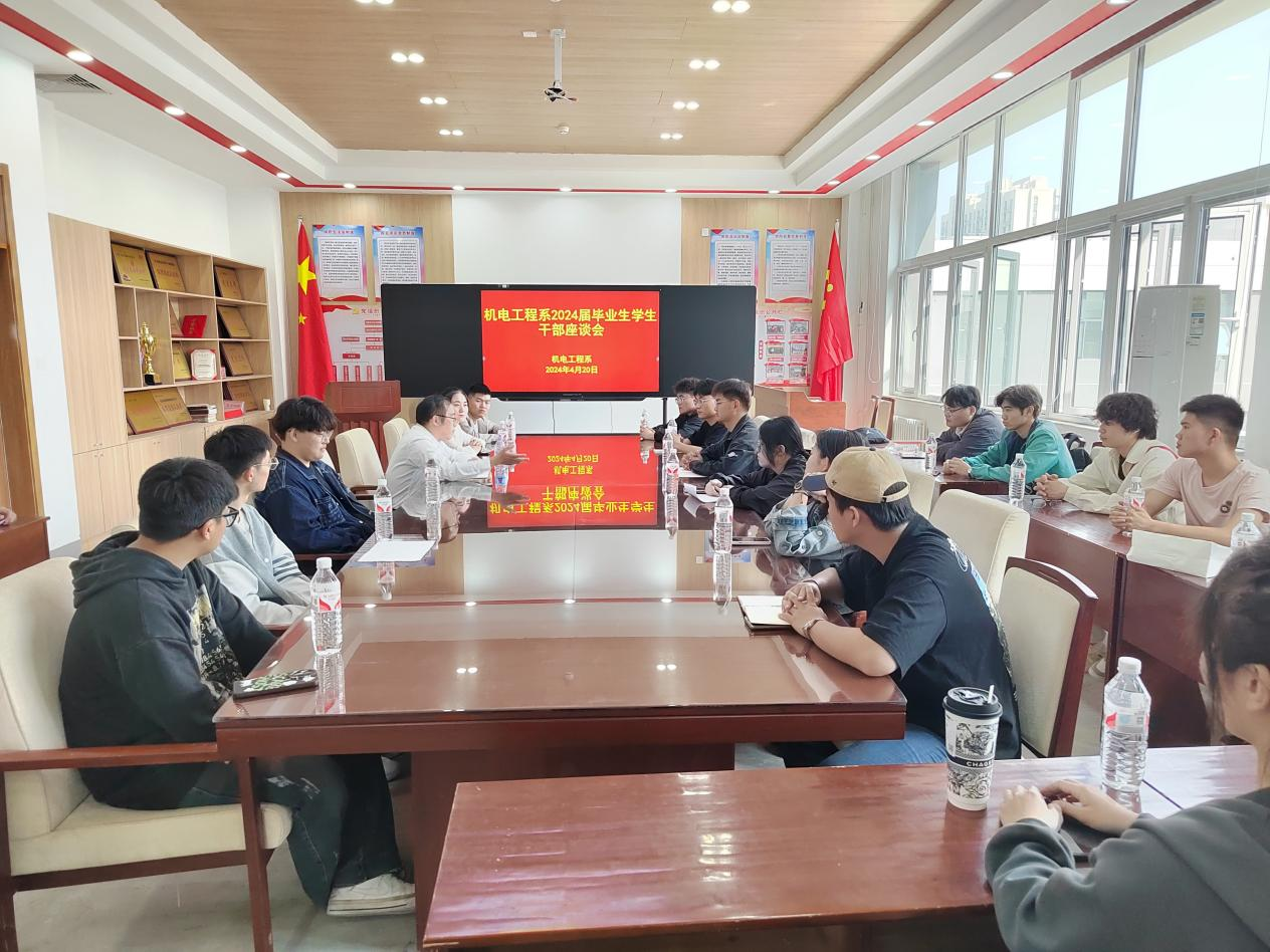 召开一次毕业生座谈会。召开毕业生座谈会,20余位学生党员、学生干部参加,任伟欢迎同学们返校,并感谢同学们在系部发展、班级建设中所起到的作用,同时提醒同学们做好科学的职业规划,继续发挥模范带头作用,在工作岗位发光发热。机电工程系团总支副书记刘丽敏逐一了解学生的就业情况,针对未就业学生提出建议,叮嘱同学们一定珍惜大学时光,协助班主任老师做好相关事宜。