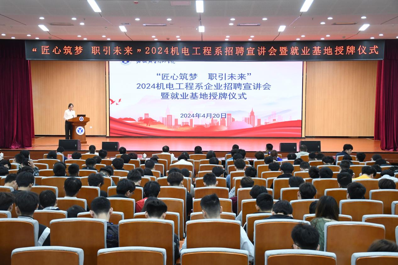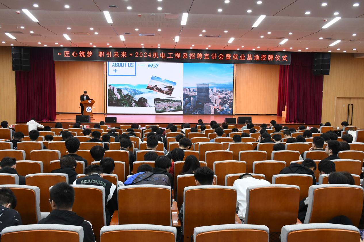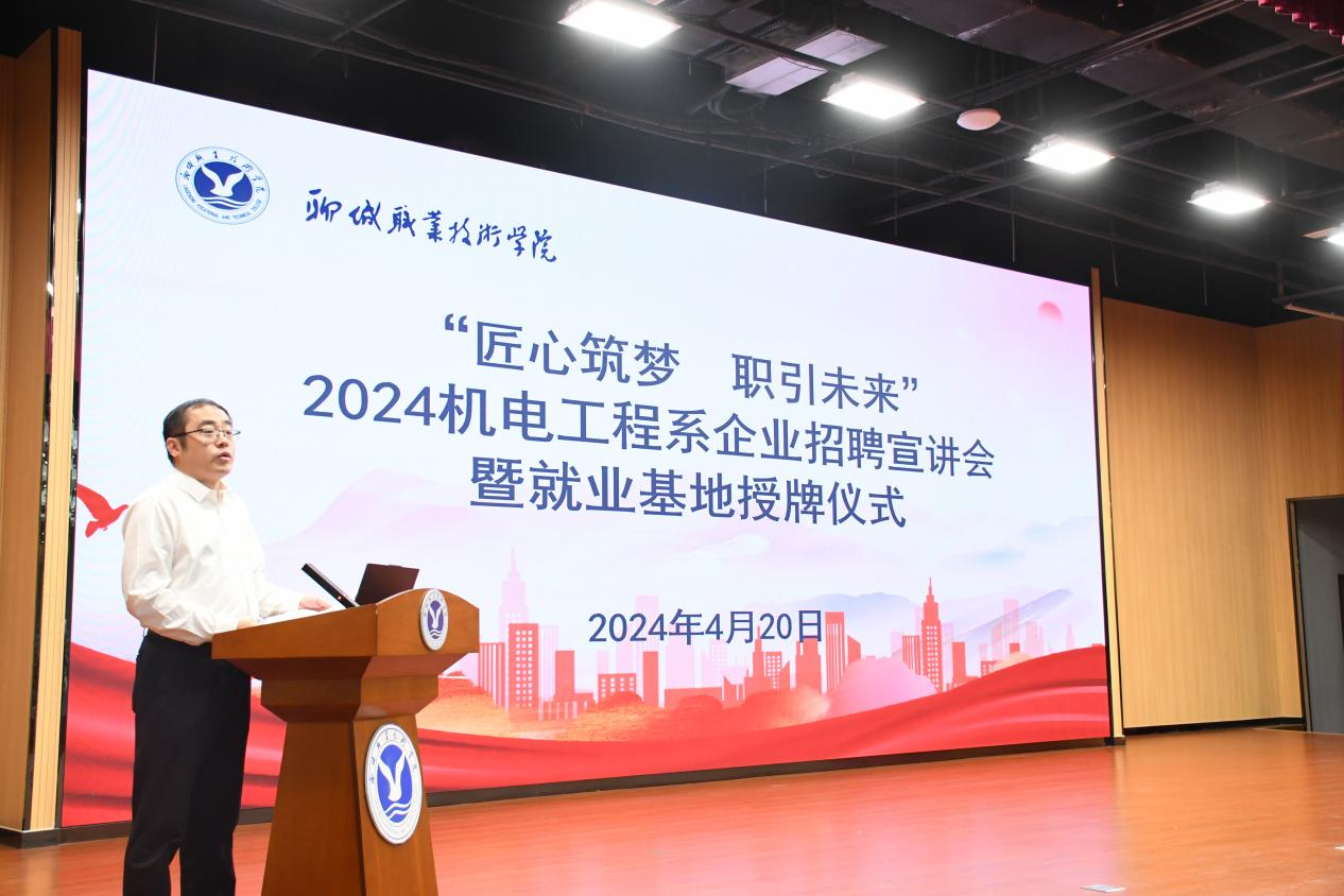 开展一次宣讲会暨就业基地授牌仪式。4月20日,机电工程系举办专场招聘宣讲会暨就业基地授牌仪式,活动由机电工程系团总支副书记刘丽敏主持。学校党委委员、副院长刘雪巍为“聊城职业技术学院大学生就业基地”授牌,机电工程系党总支副书记任伟为“机电工程系产教融合实习就业基地”授牌。东营胜利石油技术服务有限责任公司、中通客车股份有限公司等11家企业依次上台宣讲,毕业生们与用人单位招聘负责人积极交流、沟通,现场氛围火热。