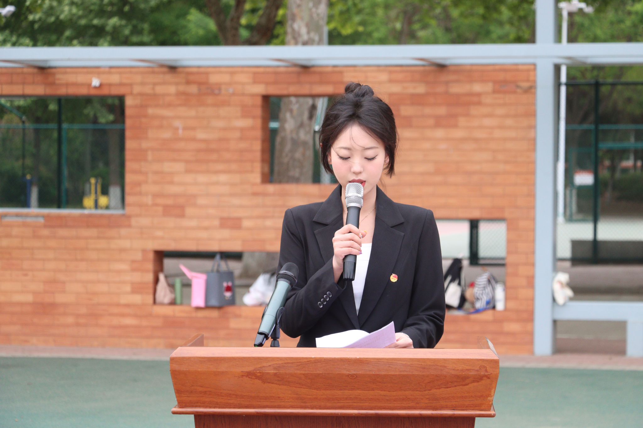 医学系学生代表匡鑫发表国旗下的演讲,她表示,要以五四精神为引领,坚定理想信念,勇担时代使命,用青春志气挺起中国脊梁,用奋斗汗水书写无悔青春。