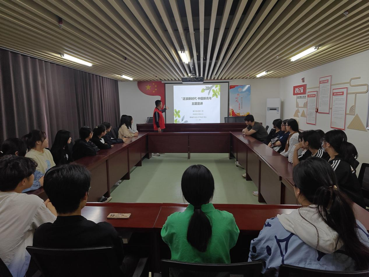 此次活动分为两个环节,第一个环节是“逐浪新时代 中国新青年”主题宣讲活动。宣讲员表示,青年是时代的先锋,是民族的希望。回望历史,五四运动孕育了“爱国、进步、民主、科学”的精神,激励着无数青年投身国家建设的伟大事业。新时代的青年团员,在“五四青年节”来临之际,应该传承这份精神,勇当先锋,敢建新功,继承发扬“奉献、友爱、互助、进步”的志愿者精神,响应“百万大学生进社区”的号召,展现青年担当,为社区建设贡献青春力量。