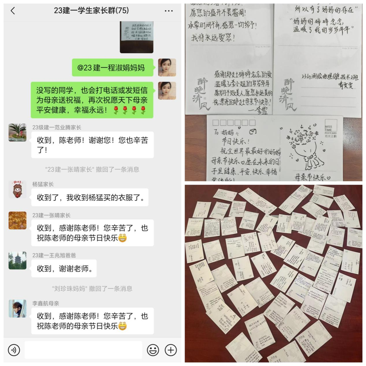 班主任老师将明信片内容一一传递给了家长,既给家长节日的惊喜,同时密切了家校联系,更好地促进学生成长成才。