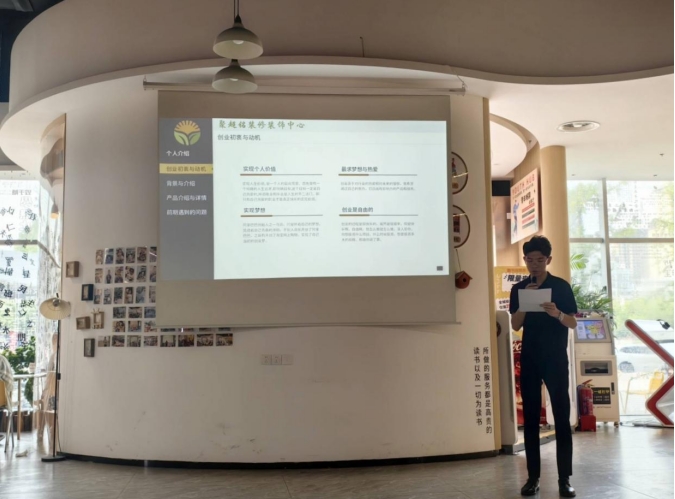刘桂超在大学期间积极参与创业类项目及竞赛,取得了优异成绩,并于2024年4月成功创办了一家装饰装修中心。此次分享他讲述了自己创业的初衷与动机,介绍了创业团队组建的过程和主营项目,分享了在创业过程中克服困难和挑战的经验。活动也使他对创新创业过程中的优势与不足有了更清醒的认识。