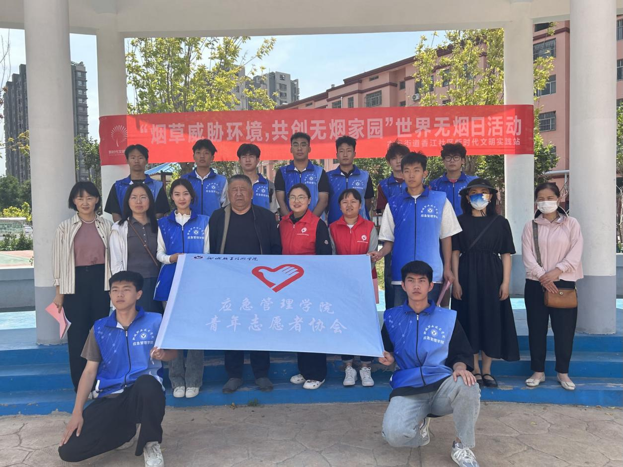 5月31日是第37个世界无烟日。为提高公众健康意识,营造无烟环境,在世界无烟日来临之际,应急管理学院充分发挥“百万大学生进社区”积极作用,组织“非遗叶雕”、“思辨青春”等社团学生,联合古楼街道香江社区开展“烟草威胁环境,共创无烟家园”宣传活动。