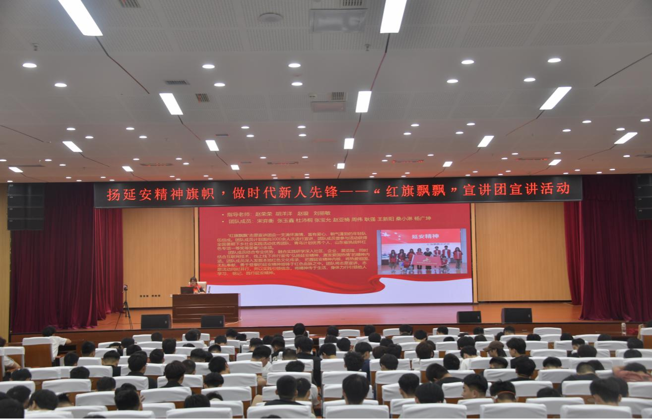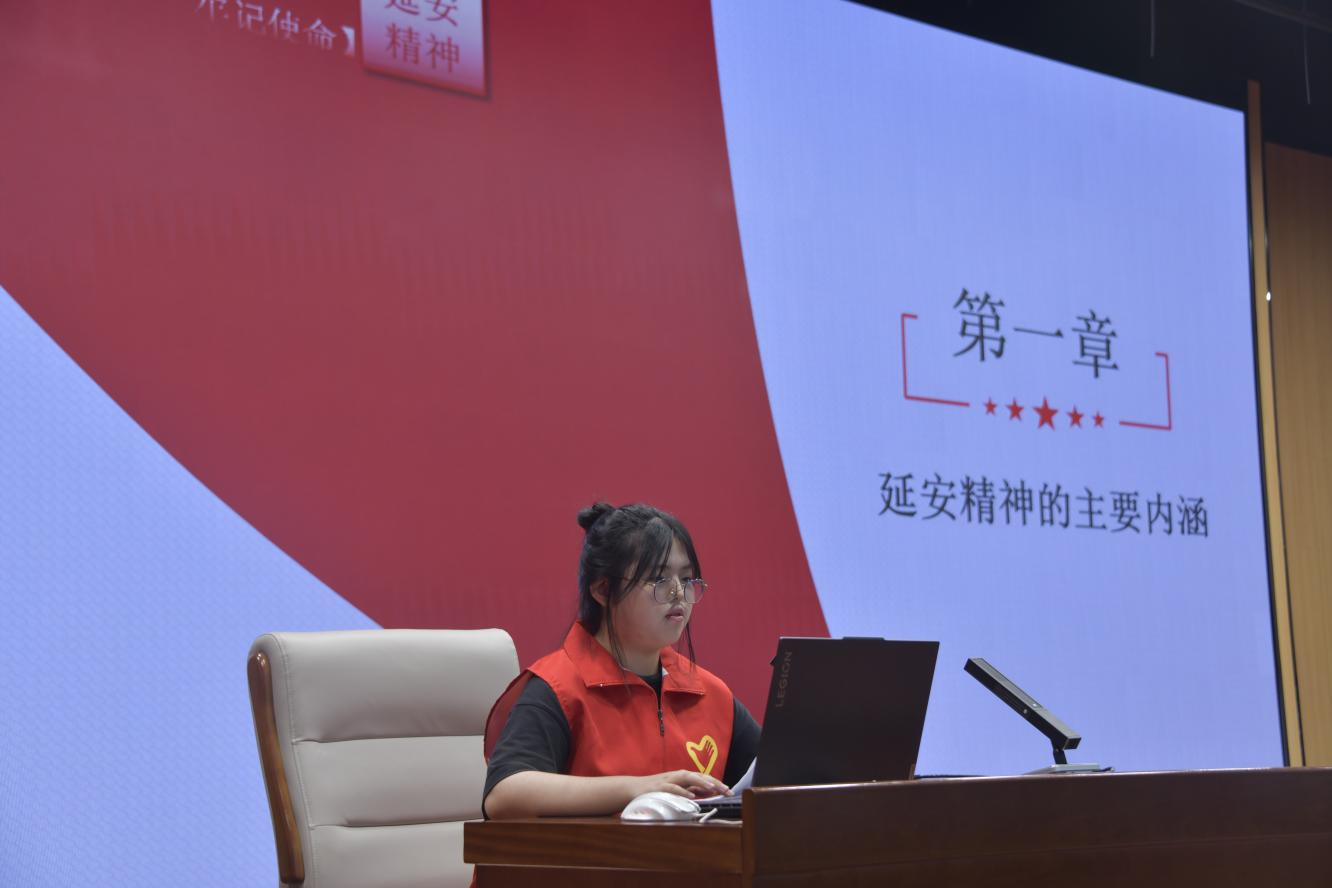 “红旗飘飘”延安精神志愿宣讲团成员杜沛桐利用故事引入,生动讲述了老一辈革命家在延安所作出的巨大努力和贡献,阐述了延安精神对延安产生的巨大影响。宣讲团还对延安精神深厚的科学内涵和当代价值进行了系统描述和解析。同学们听完后大为感叹,为延安的发展所折服,更加坚定了自己作为青年的使命。