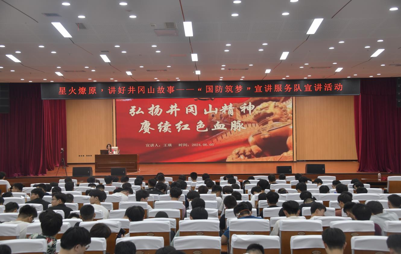 “国防筑梦”井冈山精神志愿宣讲团成员王瑛讲解了井冈山的革命历史,井冈山精神的革命起源,以及毛泽东等革命前辈对井冈山精神做出的突出贡献,重点讲解了井冈山精神的重要内涵,井冈山背后丰富的历史底蕴与精神文化。同学们听后对井冈山精神有了更加深刻清晰的认知,明白了井冈山精神影响下当代青年的历史任务和历史使命,更加坚定了前进的方向。