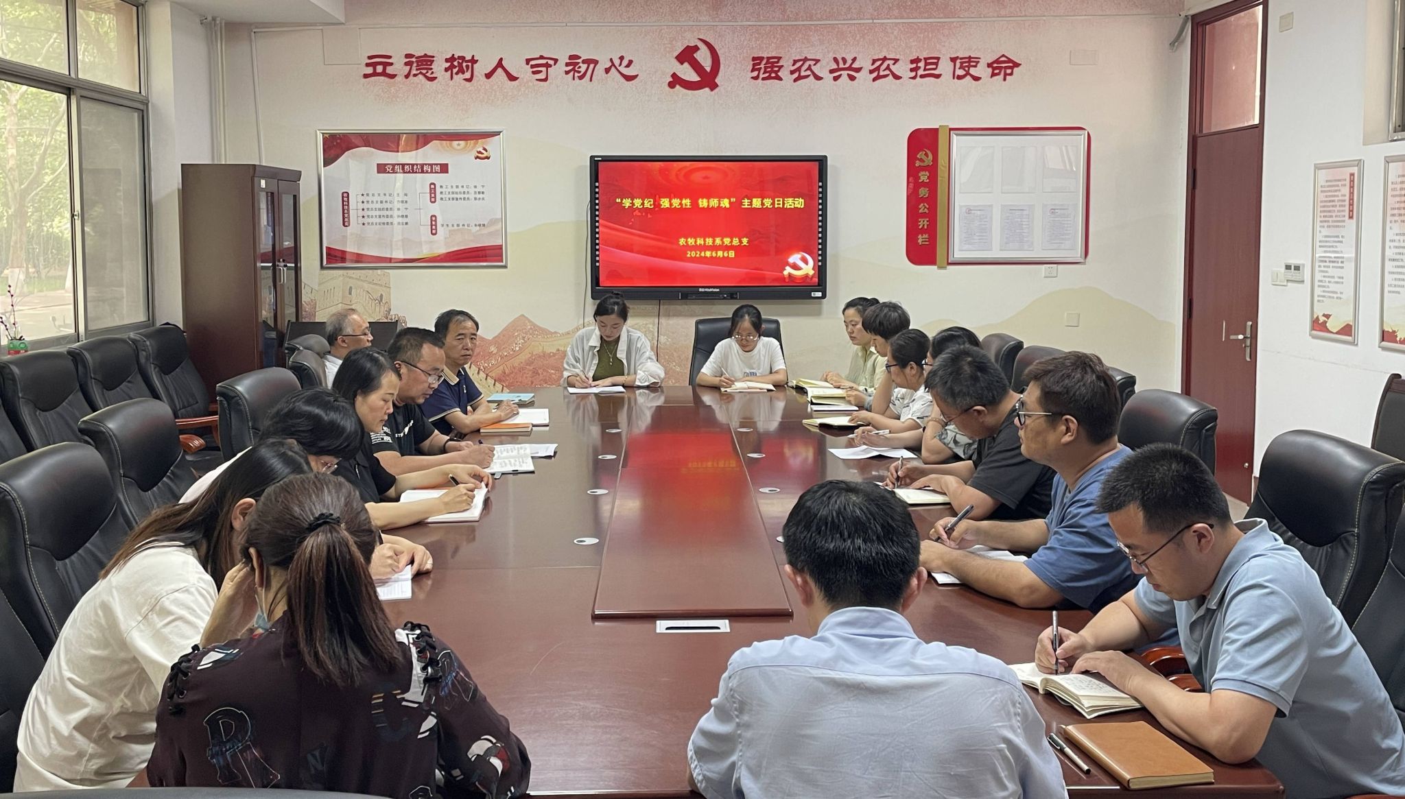 为深入推进全面从严治党,提高党纪学习教育实效,进一步加强师德师风建设。6月6日,农牧科技系党总支组织开展党纪学习教育主题党日活动。活动由党总支副书记李晓平主持,全体党员参加。