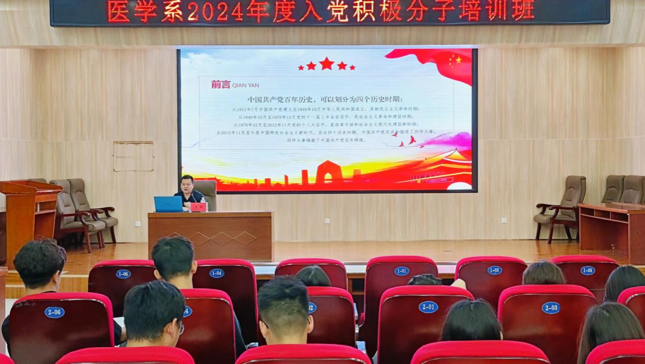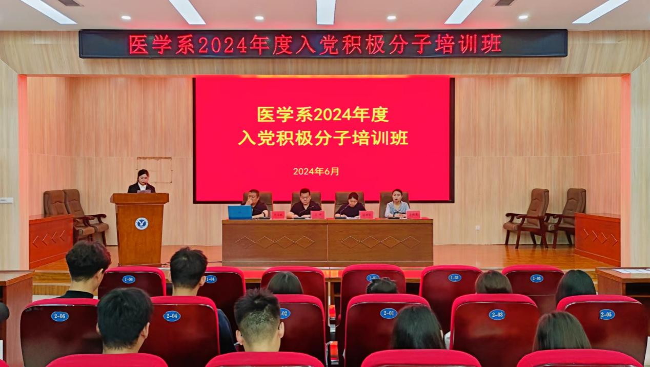 为进一步做好党员发展工作,端正学生入党动机,强化入党积极分子的整体素质,6月21日,医学系举办2024年度入党积极分子培训班。开班仪式由医学系团总支副书记林静秋主持,学生党支部书记王新、支部委员李晓曼、党务工作者李连鹏及66名入党积极分子参加。