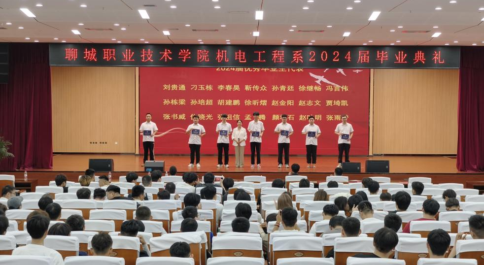 此次毕业典礼作为最后一次特殊的“思政课”,为2024届毕业生在聊职的求学生涯上画上了圆满的句号,在新的征程上,机电工程系祝愿同学们乘风破浪,顺势而上,创造更加精彩的人生。