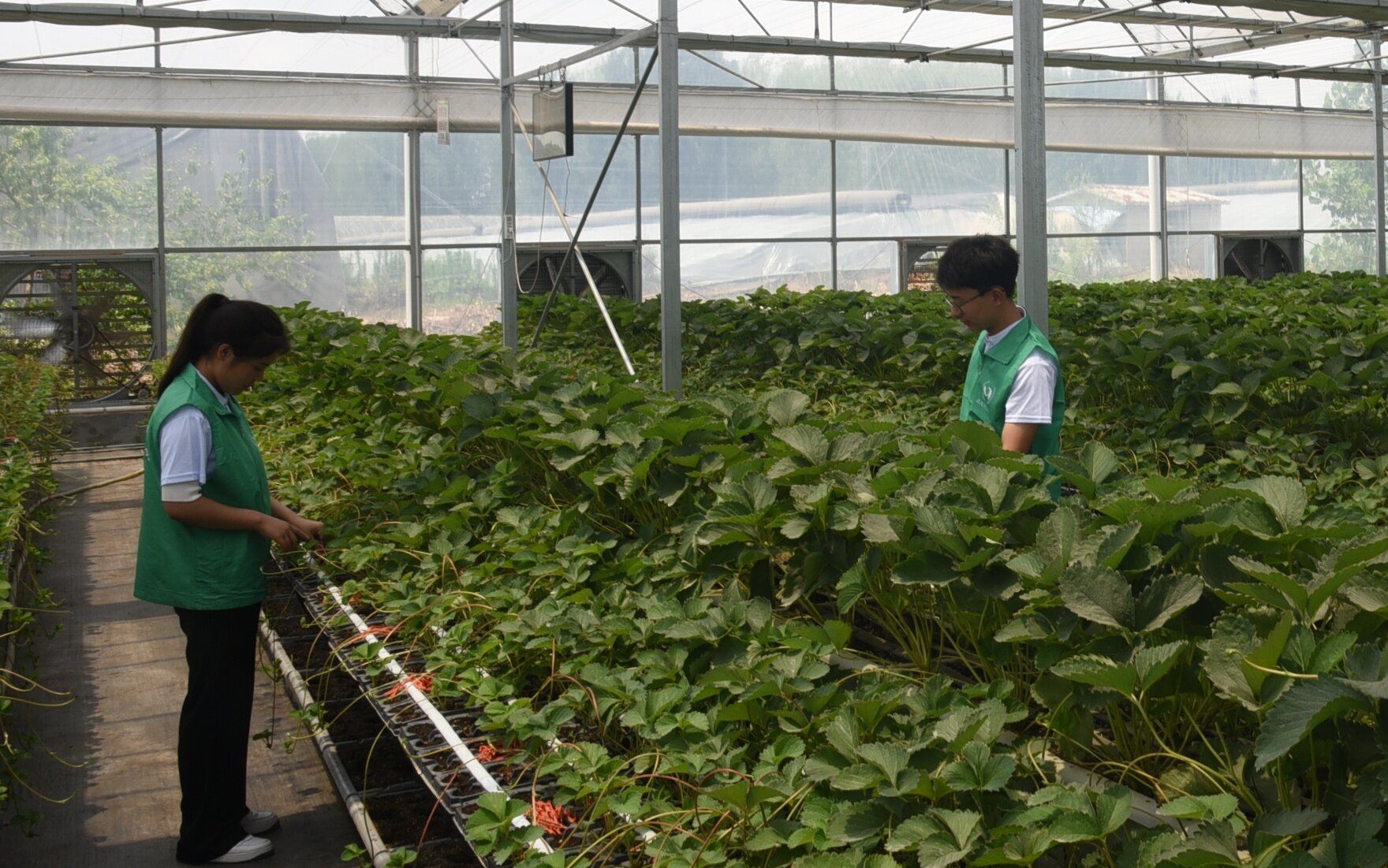 发挥专业优势,助力乡村振兴。七月,骄阳似火。国良农场种植基地的大棚内,有机蔬菜、瓜果长势喜人。实践团队在农场总经理李国良的带领下,实地参观种植园区、试验田等,对各种有机蔬菜瓜果的种植设施、无土栽培、水肥一体化、智慧温室环境控制等进行深入学习,真切体验现代智慧农业的魅力。实践团队徐宁老师带领学生对草莓、葡萄、番茄等农作物的育苗、土质改良、新品种研发等进行技术指导,分享经验,真正做到了学以致用、学有所思。
