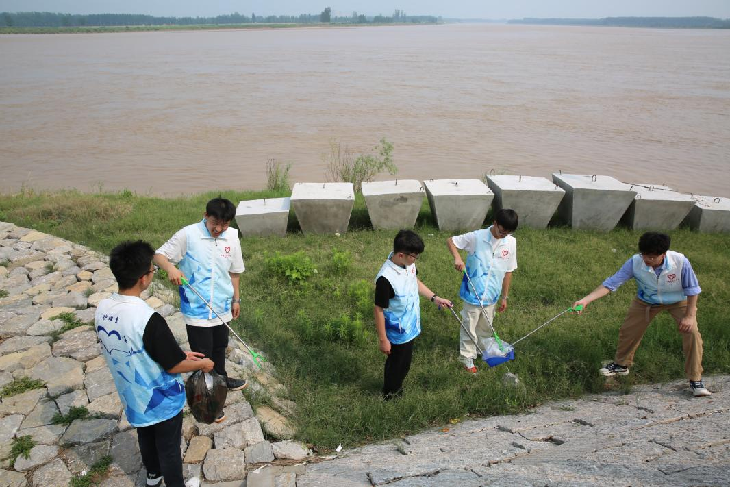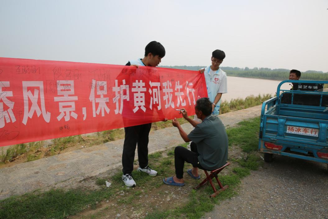 以实践之名,守护黄河的生态环境。在黄河大堤,团队沿河道仔细巡查黄河水环境治理与生态保护情况,开展了净滩护岸、防溺水宣传以及签名活动。队员们充分发挥了不怕苦不怕脏不怕累的精神,把河滩的白色污染垃圾、纸屑、烟头等进行了垃圾分类收集和处理,使河滩干净整洁。队员们举着“文明旅游添风景,保护黄河我先行”的条幅,号召周边的居民、游客签名,共同做服务生态文明建设和保护母亲河的宣传者、守护者和践行者。