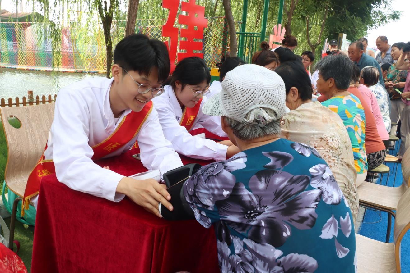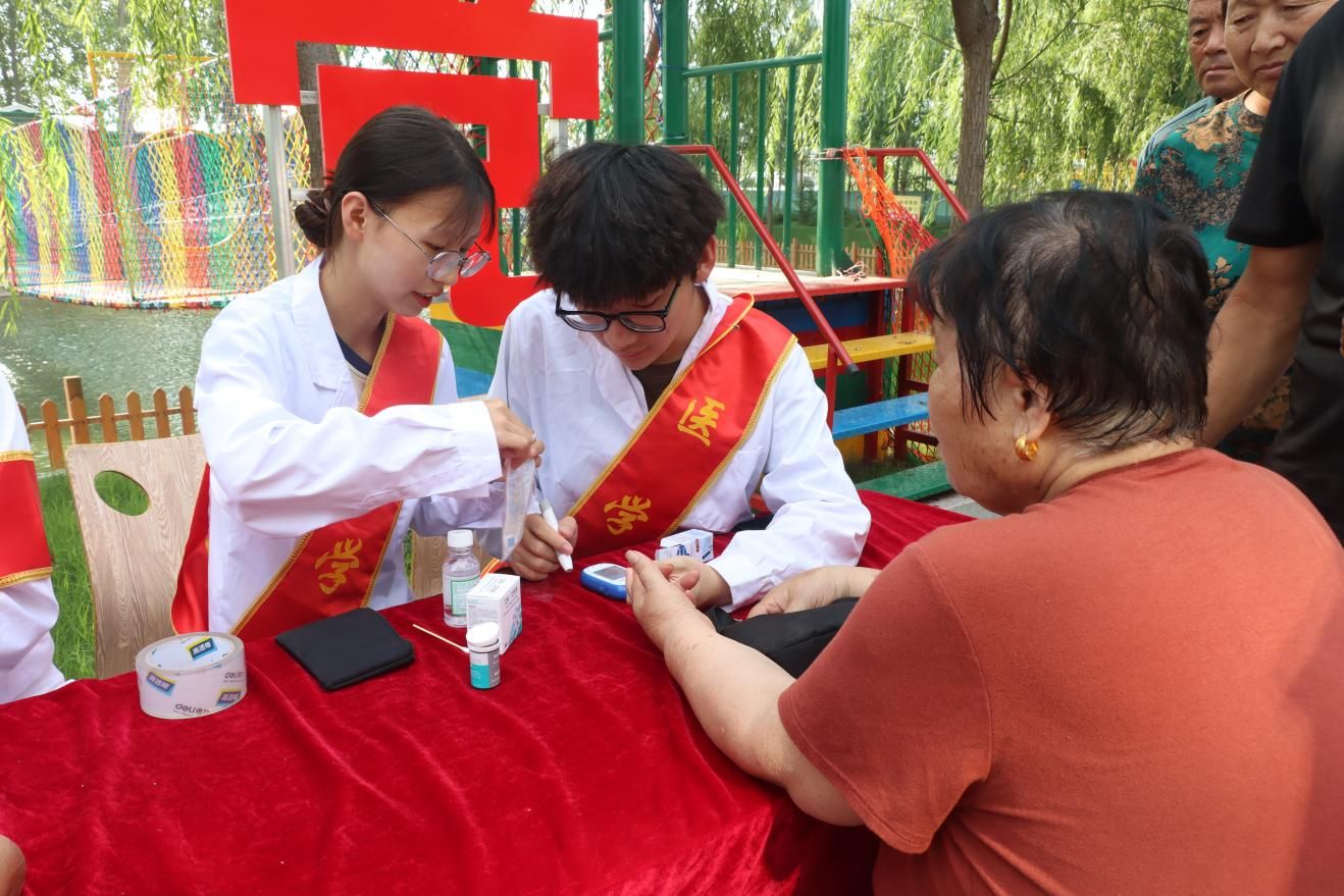在山东省乡村振兴“十百千”工程示范村、山东省“省级美丽乡村”——冠县柳林镇大杨庄村,40名医学学子结合自身专业,为当地群众开展量血压、测血糖、康复保健、儿童口腔检查等服务,普及科学防病、安全用药、口腔护理等知识,引导村民群众养成健康的生活方式,营造了讲卫生、爱科学的浓厚氛围。志愿者热情周到的服务受到广大村民一致好评。