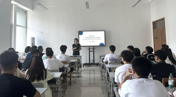 辅导员潘晶伟以“携手并进,打造智驭挑战的学生干部团队”为主题,围绕工作中常见的问题与同学们展开讨论。她强调,面对日益复杂多变的挑战,学生干部团队需要强化内部沟通、优化资源配置、提升创新能力,并通过生动的案例和互动,引导学生干部们思考如何构建高效、和谐、智慧的团队文化。