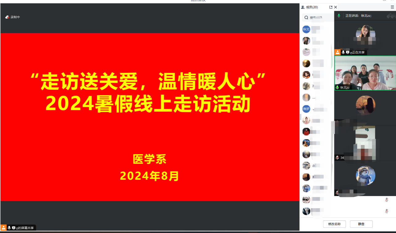 为深入了解家庭经济困难学生的学习与生活状况,促进家校共育有效衔接,提高资助育人水平,医药学院组织开展“走访送关爱,温情暖人心”暑期线上走访活动,团总支副书记林静秋、辅导员老师和30余名学生代表及家长参加。