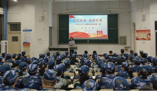 9月1日,经贸学院召开“迷彩青春 强国有我”2024级新生军训动员大会暨国防教育第一课。