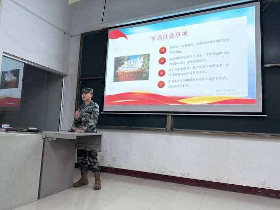 在庄严的国歌声中,军训动员大会拉开帷幕。经贸学院团总支副书苏飞向全体参训同学提出三点要求:一是要知行合一,将军训作为坚定理想信念的重要经历,弘扬军训优良作风,进一步提升思想政治素养,自觉把个人理想追求融入党和国家事业之中;二是要许党报国,以担当尽责践行初心使命,主动在军训中不断涵养爱国奋斗的精神底蕴;三是要“自找苦吃”,以脚踏实地练就过硬本领,以军人标准严格要求自己,为书写中国特色强军之路的时代答卷贡献青春力量。