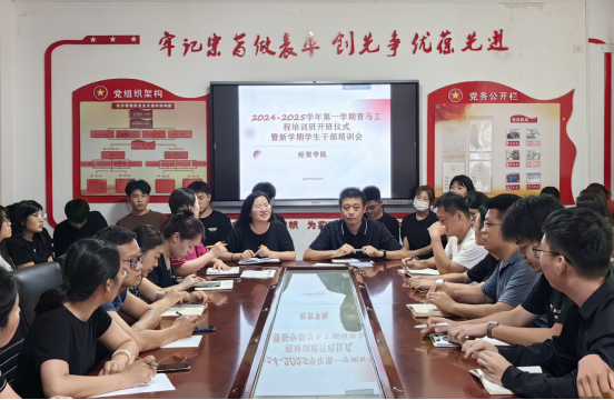 近日,经贸学院开展2024-2025学年第一学期青马工程培训班开班仪式暨新学期学生干部培训会。经贸学院党总支副书记曹先鹏、团总支副书记苏飞、辅导员及2023级学生干部参加培训。